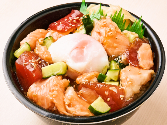 28 ねぎとろトロサーモン炙り漬けまぐろ丼
